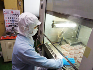 発酵完了時の製品検査により、おいしい納豆に仕上がっているかどうか検査されます。